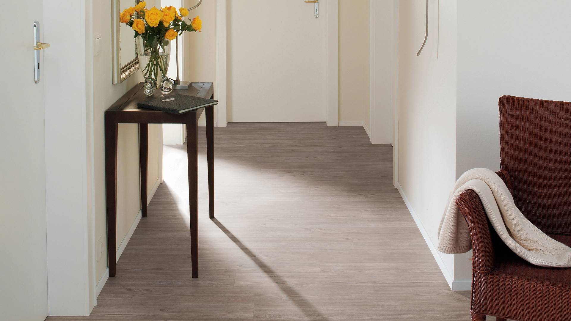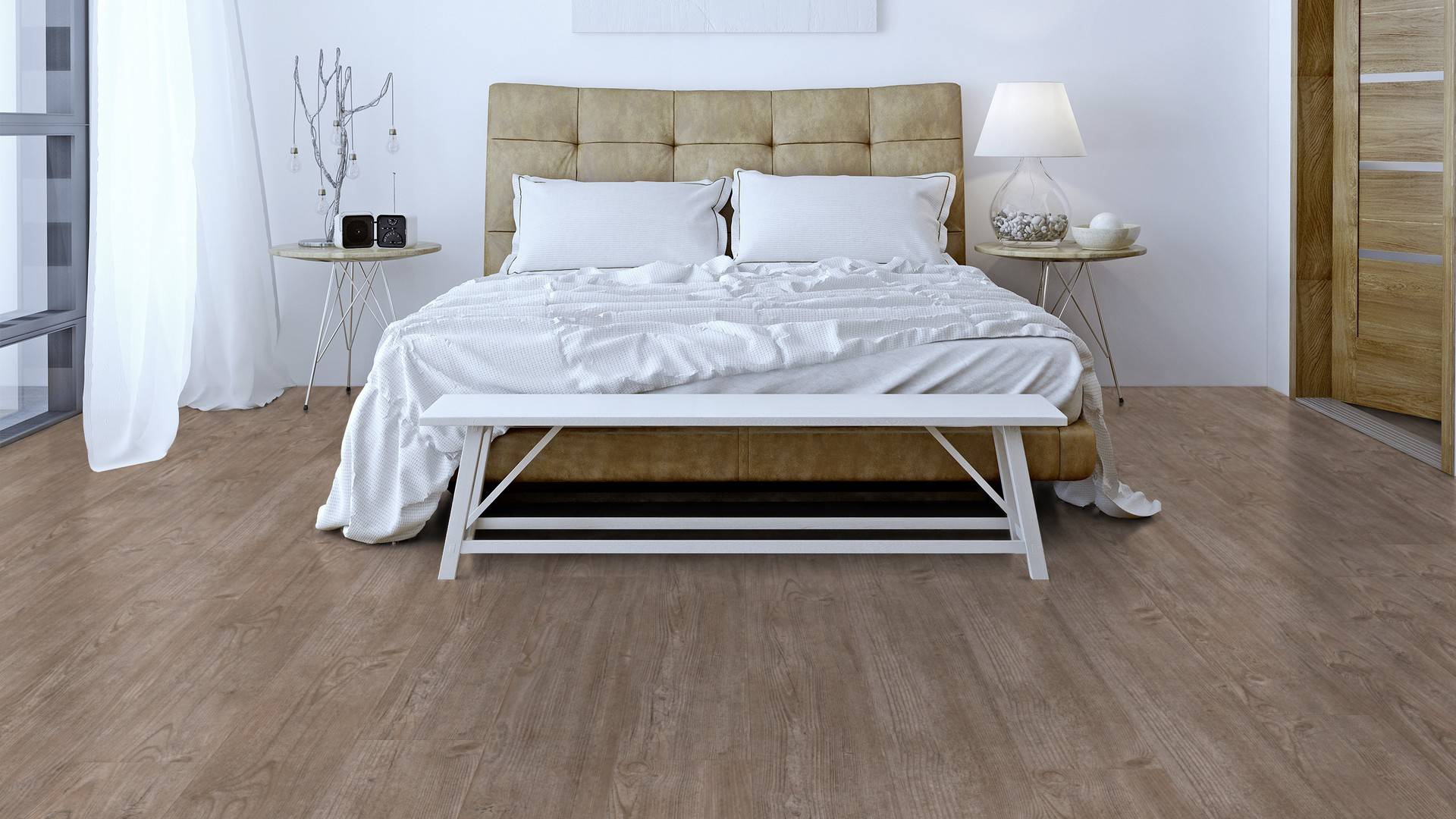 Der Bodenbelag inNatural Rustic Pine überzeugt durch seine perfekte Imitation natürlicher Holzböden. Die feine Maserung verleiht dem Boden eine authentische und hochwertige Ausstrahlung die an Böden aus Kiefererinnert. Dank der vielseitigen Farbgebung passt er zu jedem Einrichtungsstil und schafft eine harmonische Atmosphäre in deinem Zuhause.