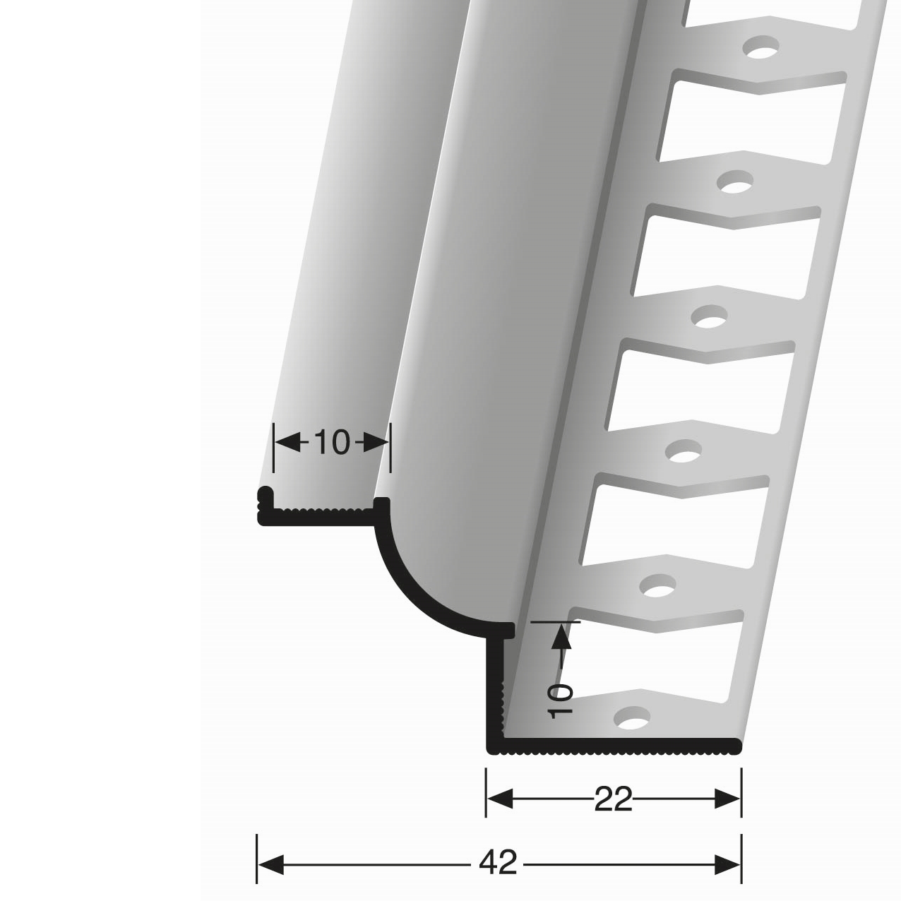 Wandkantenprofil 10 x 42 x 2500 mm Einfasshöhe 10 mm Aluminium Hohlkehlprofil Gestanzt Küberit